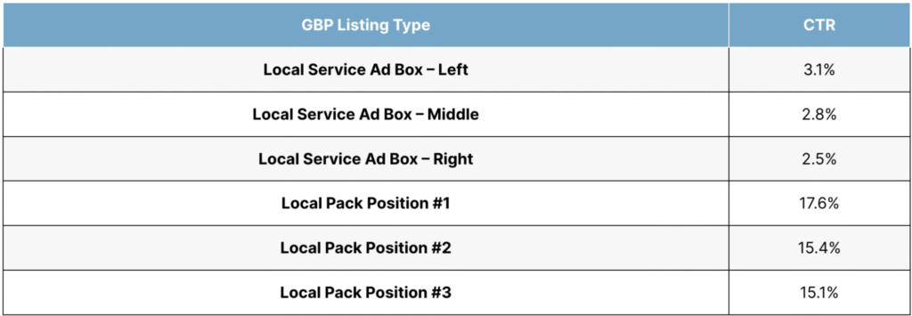 Compare this to a 17.6% for the top organic result in the Google Map pack, and a 15.1% CTR for the #3 position.