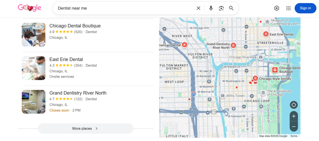 “Dentist near me” searches are some of the highest-intent searches in healthcare. When someone types that phrase into Google, they are usually looking for immediate care, not information.
